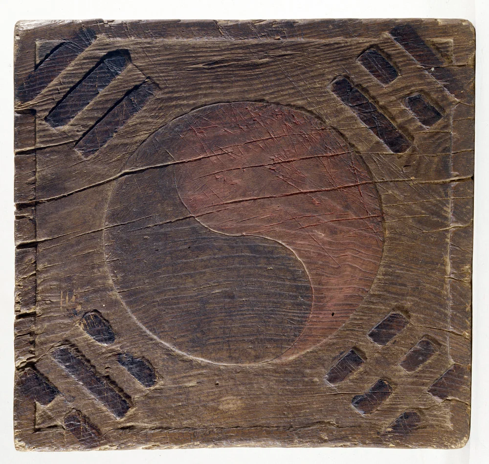 3.1운동 당시 사용하던 태극기 목각판, 1919년, 12.6 x 11.8 x 2.6 inch.