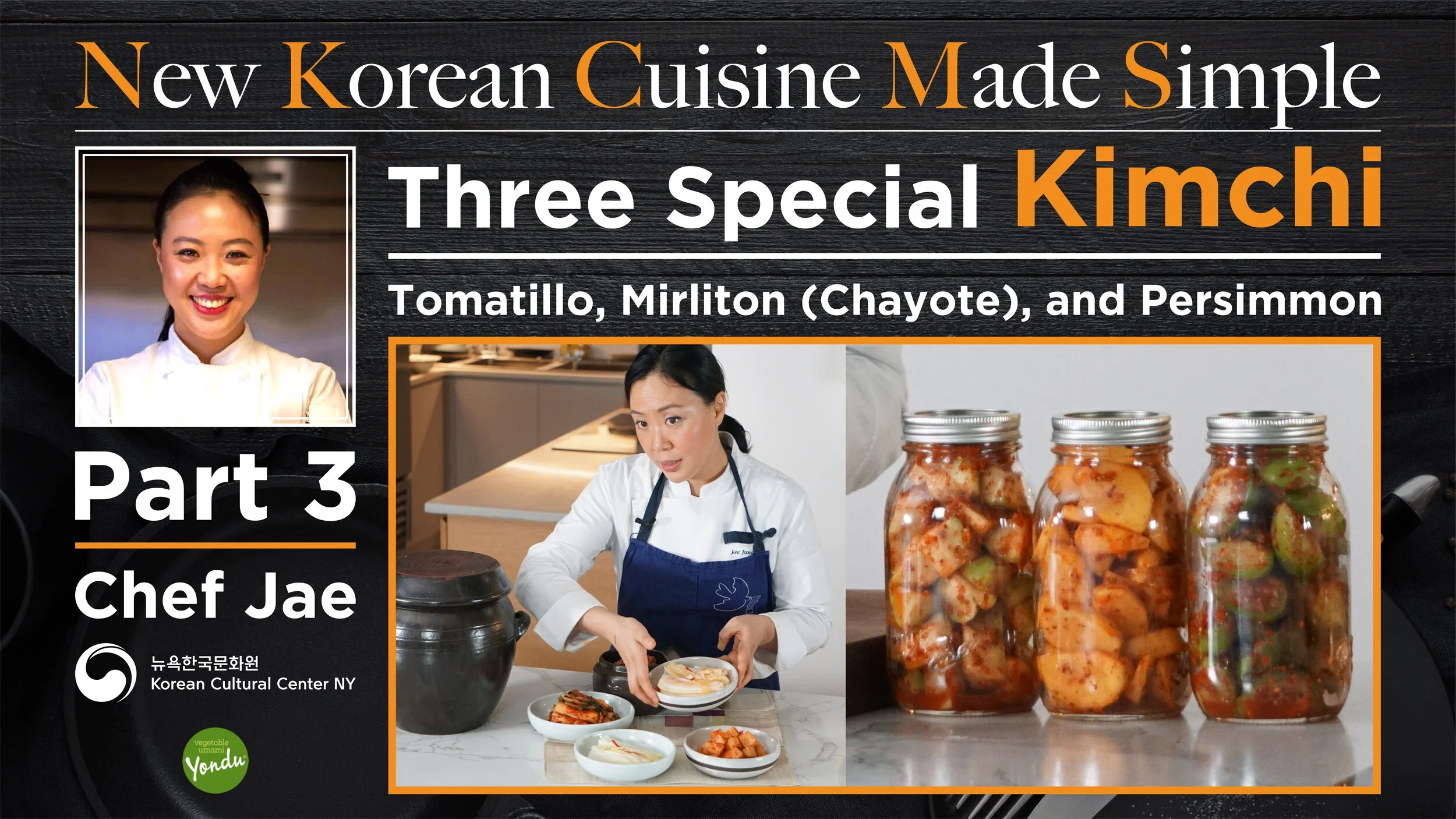 뉴욕한국문화원(원장 조윤증)은 “New Korean Cuisine Made Simple-Part III”을 2월 22일(월)부터 문화원 홈페이지 및 유튜브 채널을 통하여 현지에서 구입이 쉬운 식재료를 활용하여 집에서도 간단하게 담그는 정재은 셰프의 특별 김치 3종을 선보인다.